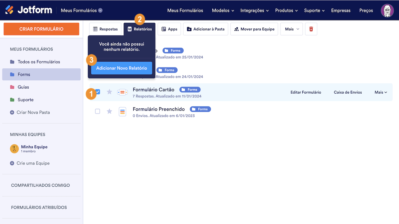 - Acesse Meus Formulários e escolha seu formulário.