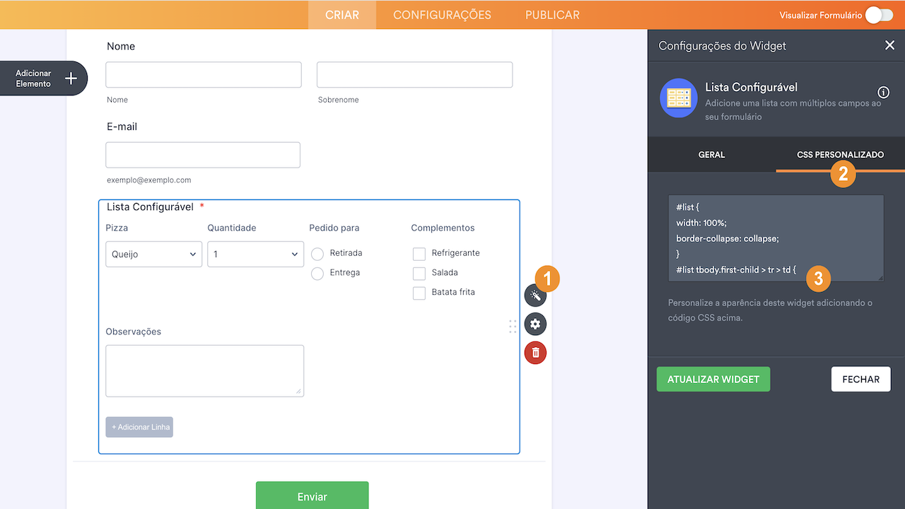 - No Criador de Formulários, selecione o ícone de varinha do widget para abrir suas configurações.
