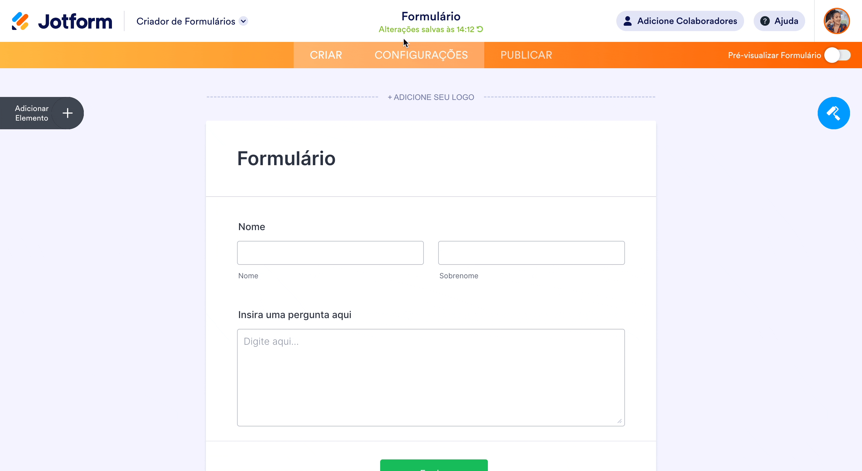 Solicite o nome e o endereço de e-mail dos seus visitantes para acompanhar os envios ao seu formulário e entrar em contato sempre que necessário. Clique em Adicionar Elemento à esquerda do Criador de Formulários. Todos os campos para formulários padrão serão exibidos na guia Básico.