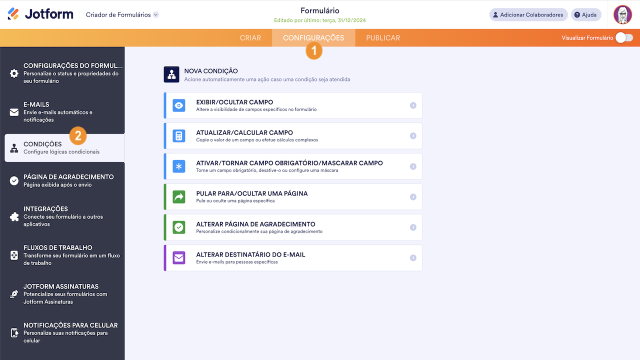 Condições no Criador de Formulários