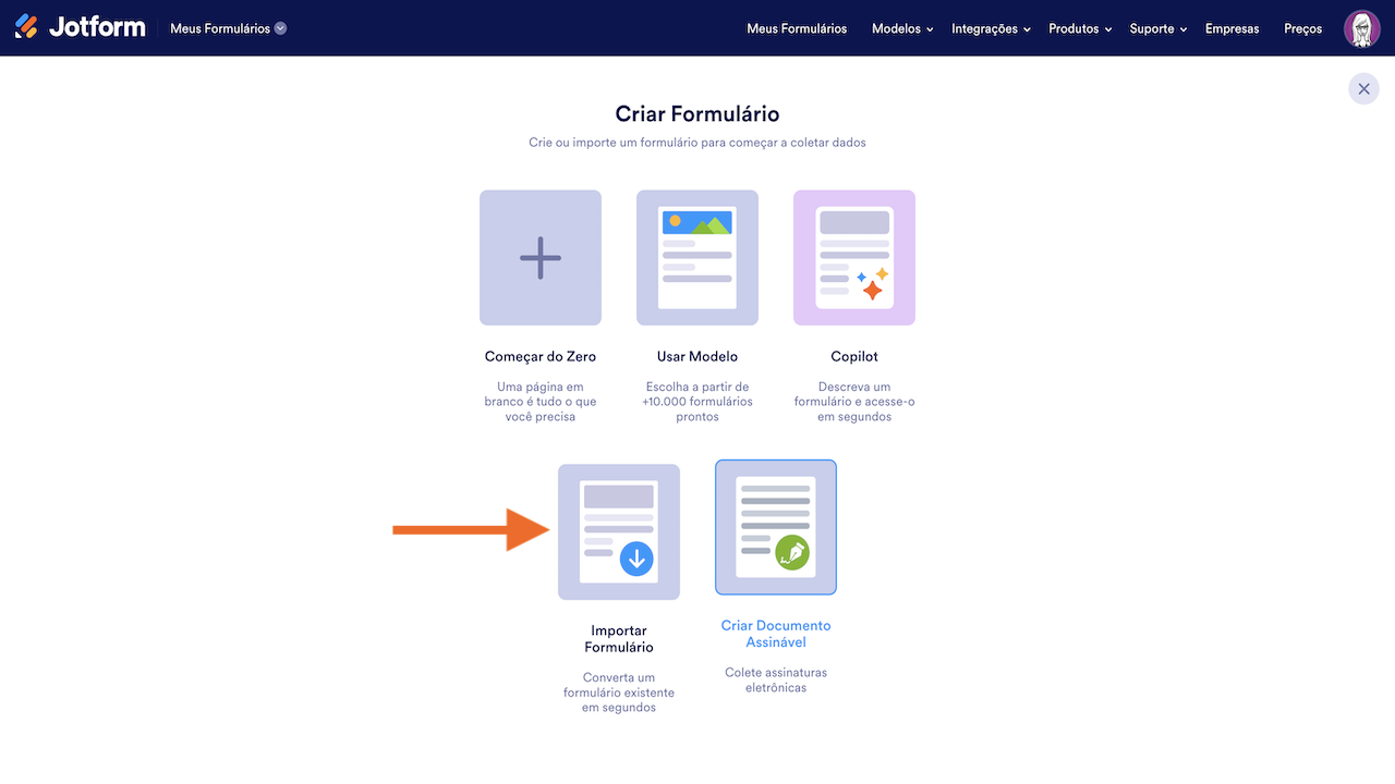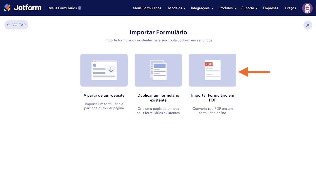 - Em seguida, selecione Importar Formulário em PDF para abrir a ferramenta Formulários PDF Inteligentes.