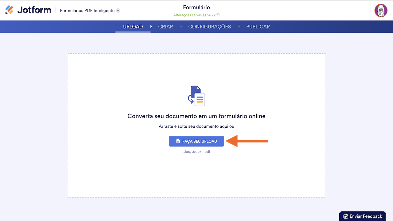 - Na ferramenta Formulários PDF Inteligentes, selecione Faça seu Upload e, em seguida, escolha seu arquivo PDF.