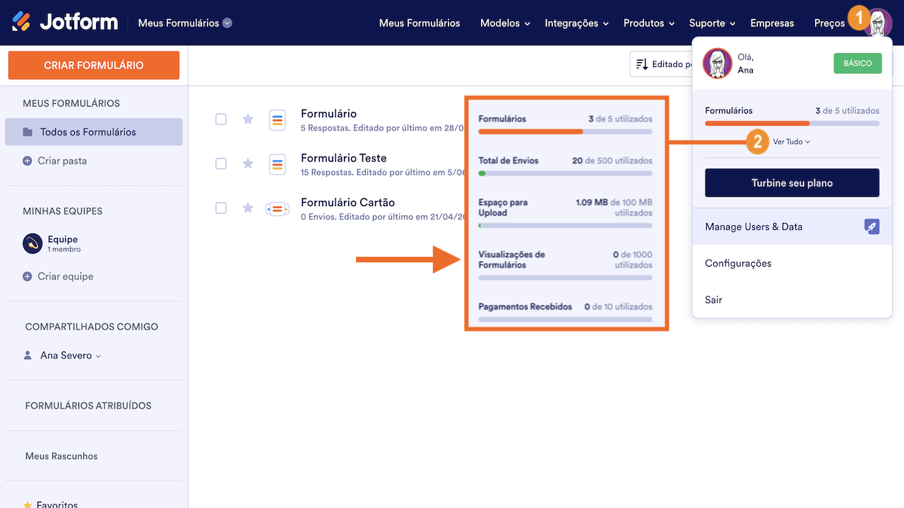 Uma Visualização de Formulário é, por vezes, chamada de impressão. Portanto, se você tem uma página em seu site que recebe 1.000 visualizações por mês, não terá problemas com o plano Básico. Toda vez que alguém carregar sua página, ela também carregará o formulário, o que será considerado uma visualização de formulário.