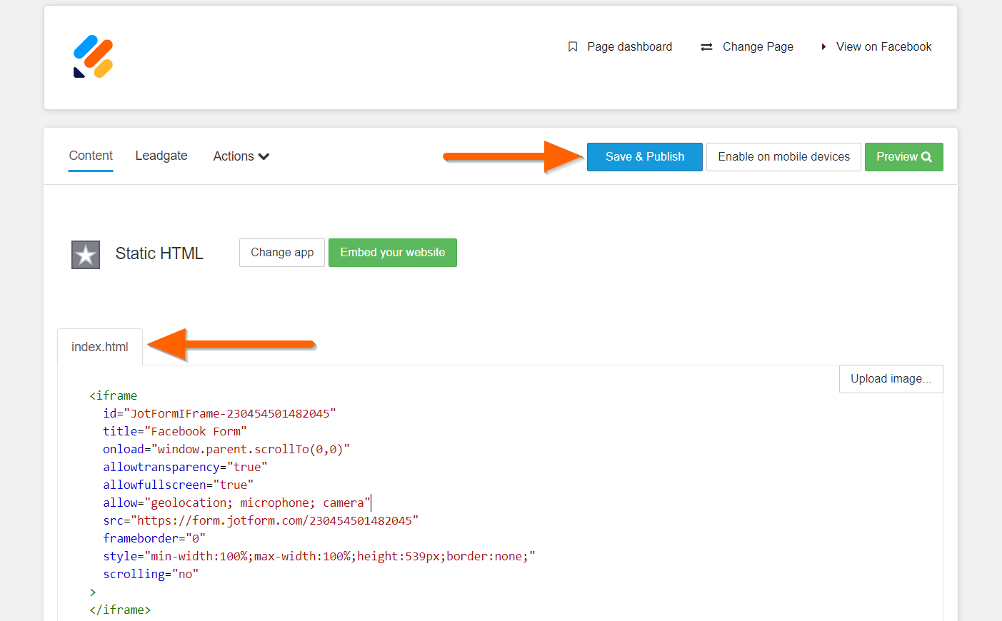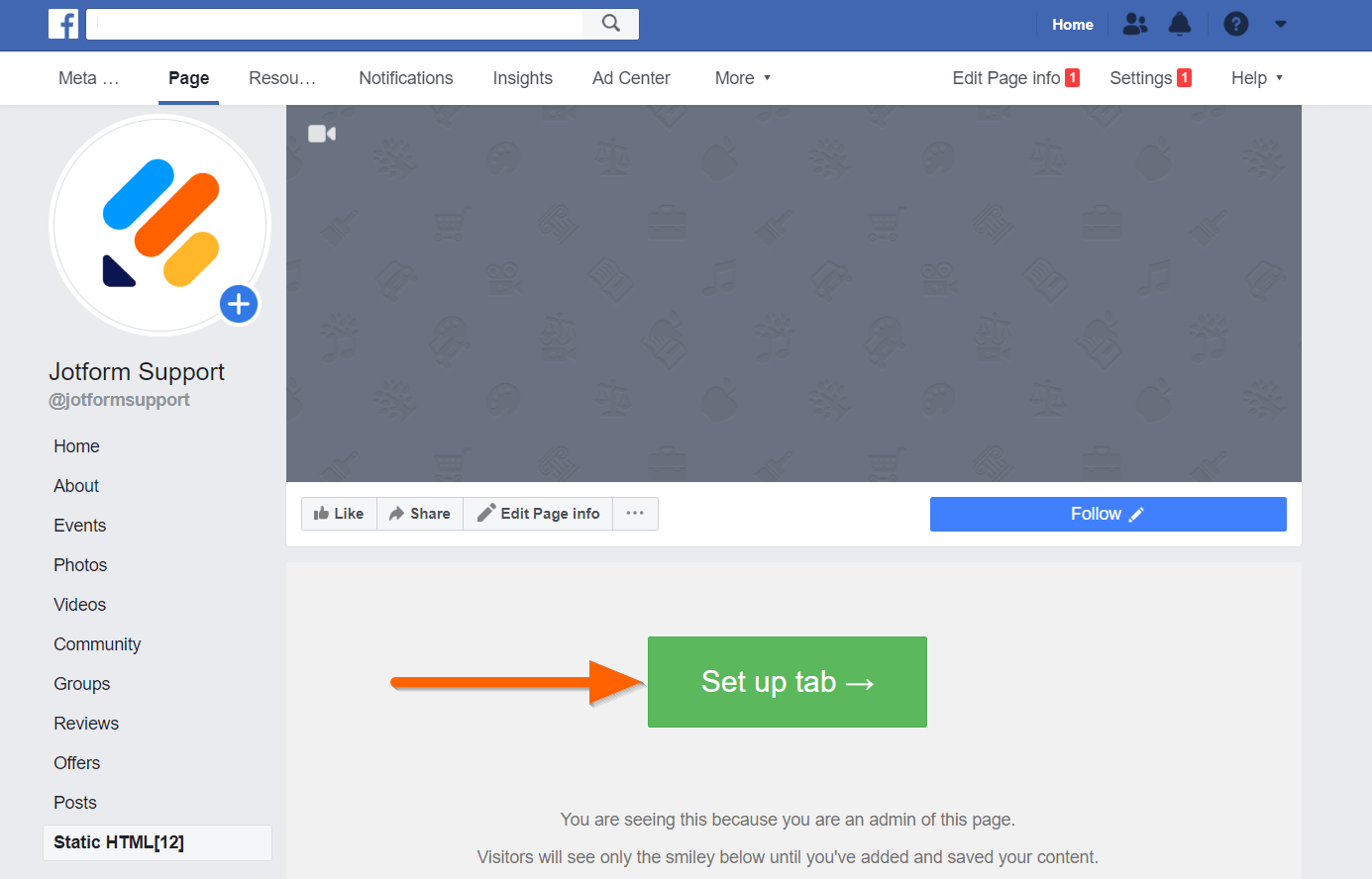Com o aplicativo instalado, vamos prosseguir adicionando o formulário à sua página do Facebook usando a aba personalizada criada pelo aplicativo Static HTML. Veja como: