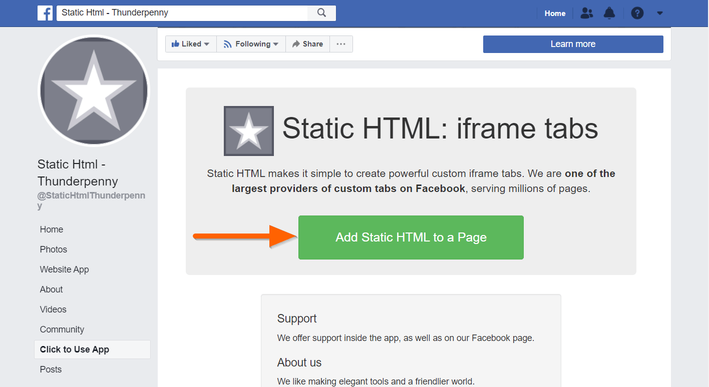 Existem diversos provedores de abas personalizadas do Facebook, mas o Static HTML da Thunderpenny é o melhor para esse método. Você pode usar o aplicativo para adicionar um formulário à sua página do Facebook sem precisar de habilidades técnicas ou escavar muito a página do desenvolvedor do Facebook.