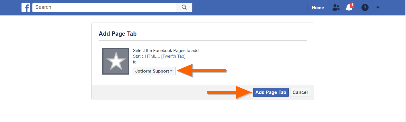 - Clique no botão Add Page Tab (Adicionar Aba na Página) na parte inferior para finalizar. Você será redirecionado para a página escolhida.