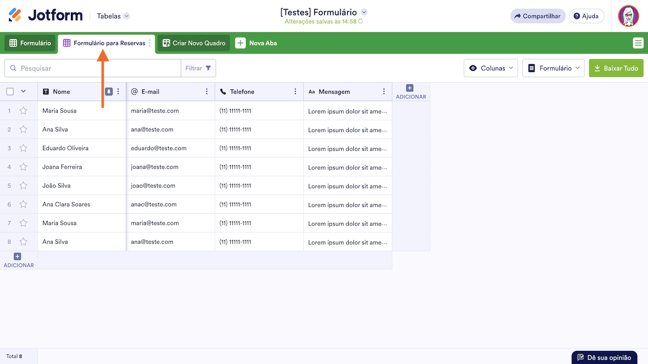 - No Jotform Tabelas, adicione uma nova aba.