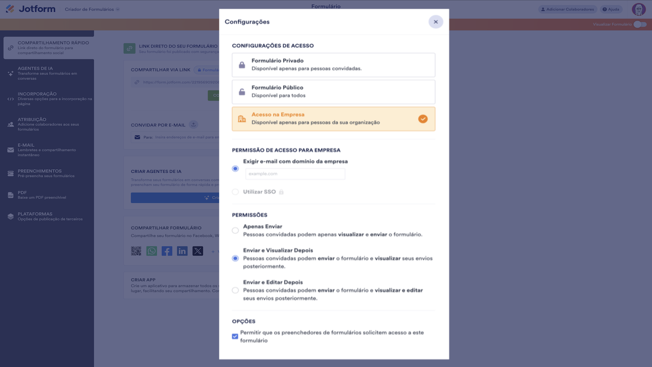 Confira também: Tornando seus Formulários Acessíveis apenas aos Membros da Empresa
