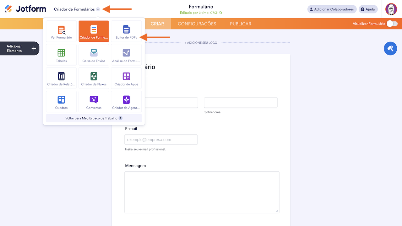 - Selecione Editor de PDFs.