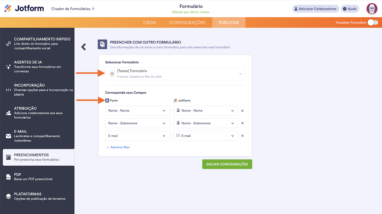 - Por fim, clique no botão Salvar Configurações para concluir as configurações de pré-preenchimento do formulário.