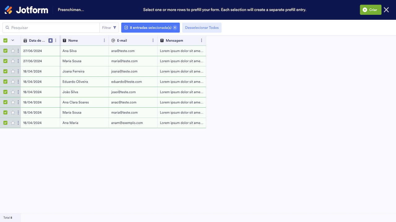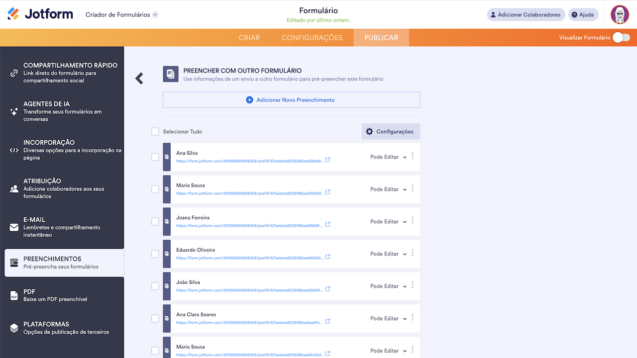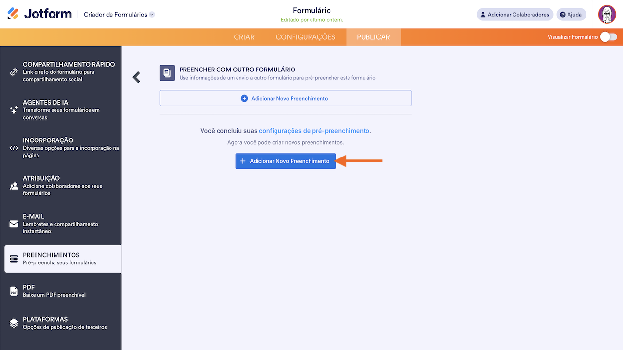 Caso esteja curioso sobre o que mais é possível fazer com o Jotform Preenchimentos, sugerimos que você confira a seguinte página: Preenchendo Previamente Campos do Formulário com Jotform Preenchimentos.