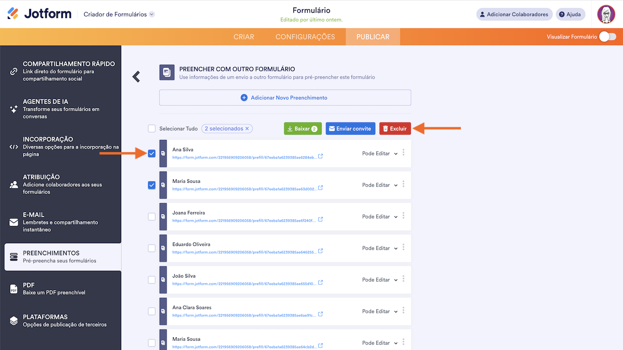 Usuários podem editar os dados previamente preenchidos. Caso não queira que os usuários editem estes dados, altere sua permissão de Editável para Somente Leitura.