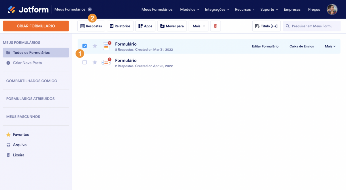 - Abra a página Meus Formulários e selecione o formulário.