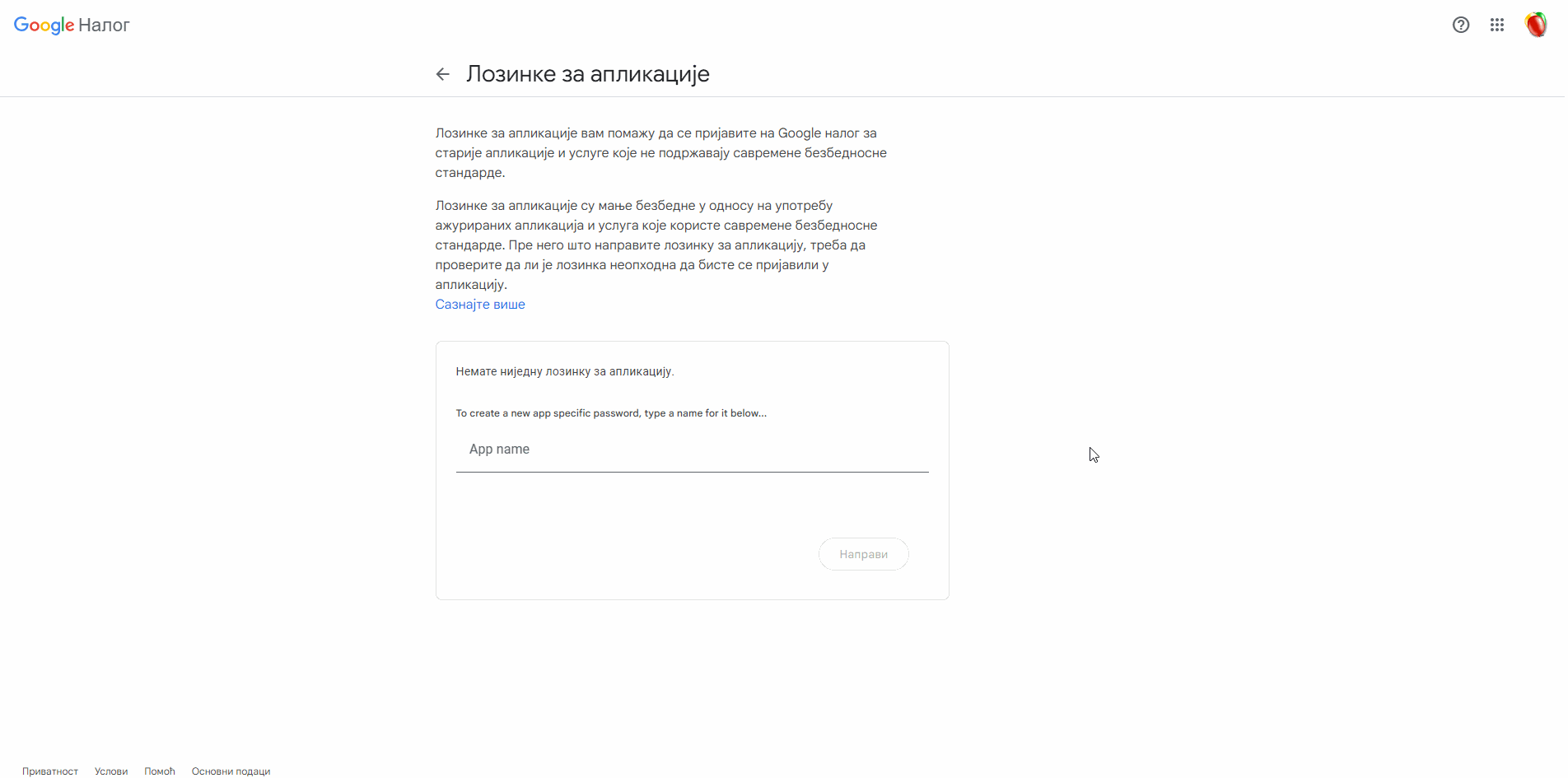 - Отвори Google лозинке за апликације и пријави се у свој налог.