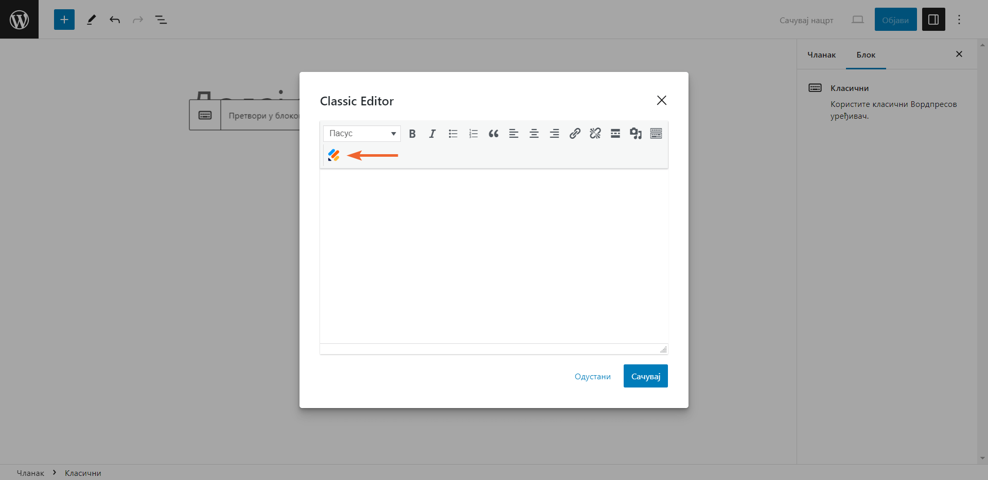 - У траци са алатима класичног блока, кликни на Jotform лого.