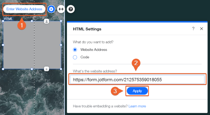 Уградња Jotform обрасца у твој Wix сајт је прилично једноставно. Све што ти је потребно је URL обрасца. Прати следеће кораке да видиш како да уградиш образац.
