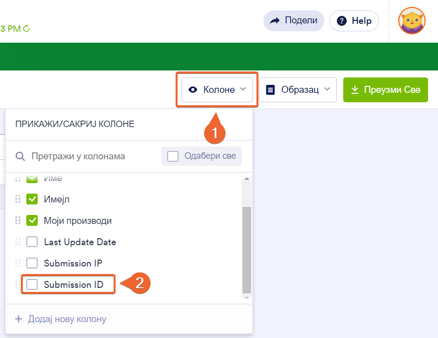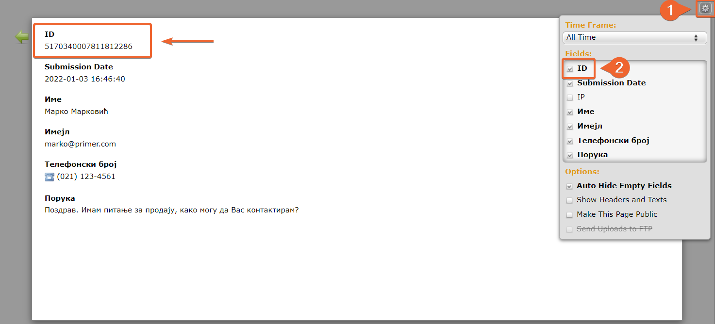 Кад год неко пошаље одговор користећи твој образац, том одговору се додаје дугачак јединствени број који се зове идентификатор пријаве.