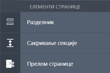 Ни један од ових елемената обрасца не може да се користи у PDF обрасцу. Уколико је потребно додати прелом странице на PDF обрасцу, то је могуће учинити директно из PDF уређивача. Такође, ни једно поље неће бити сакривено коришћењем сакривање секције елемента, већ ће сва поља бити приказана.