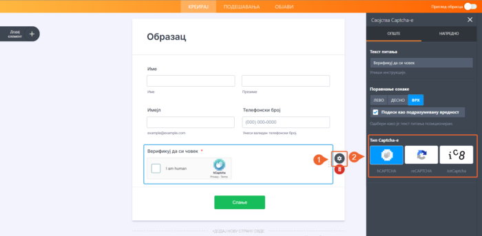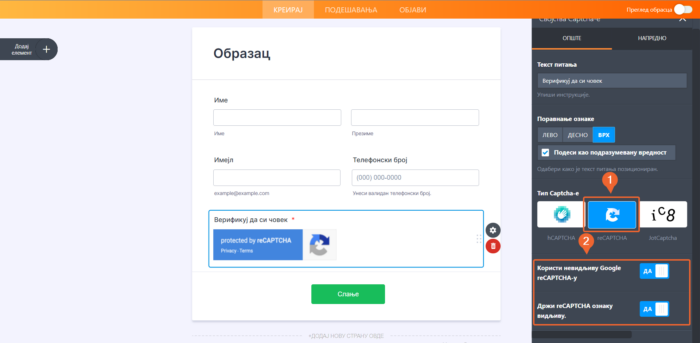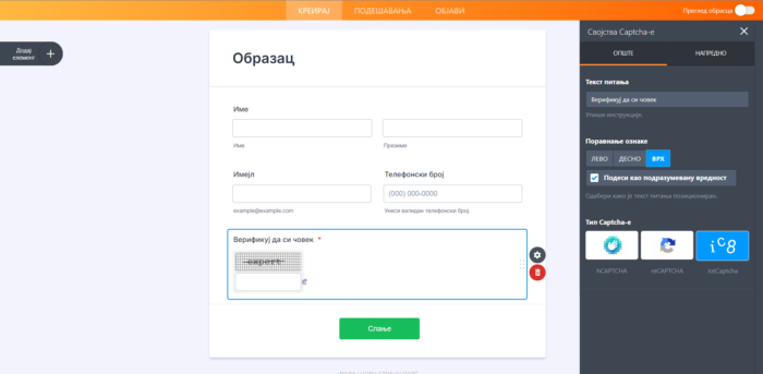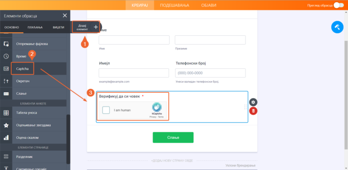Captcha поље можеш додати у образац пратећи следеће једноставне кораке: