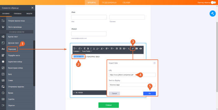 Додавање линка за преузимање на образац