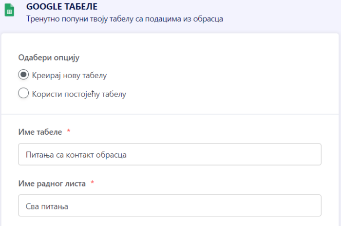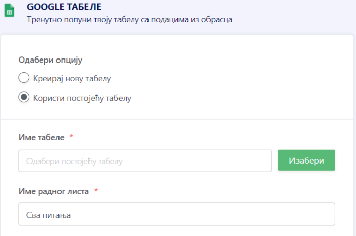 Подешавање Google Табеле интеграције је једноставно. Само прати следеће кораке.