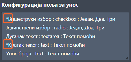 {ознака}:textarea:{помоћни текст}