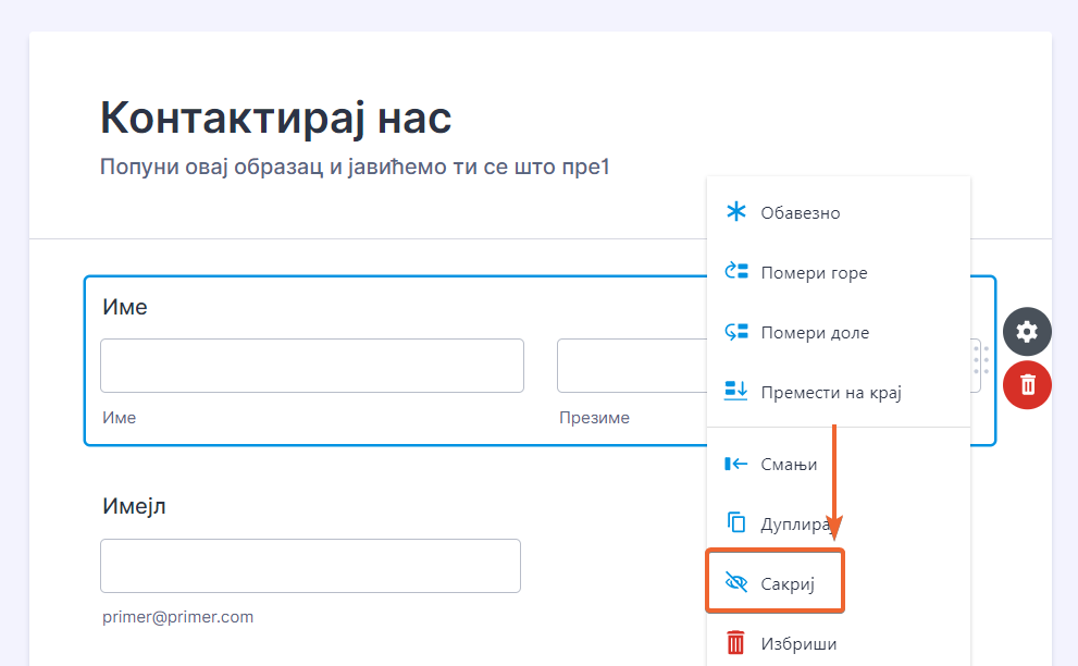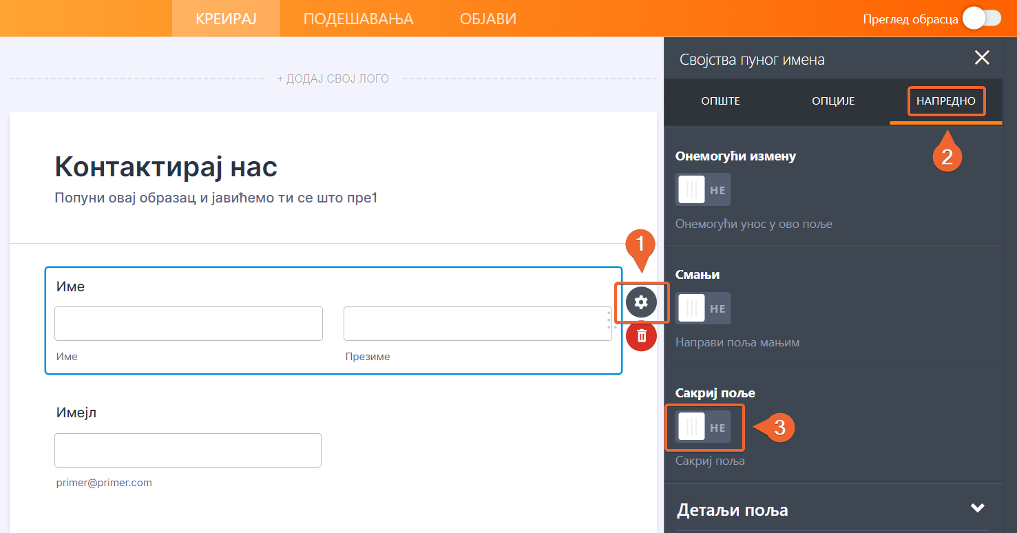 Поље такође можеш да сакријеш кроз подешавање поља.