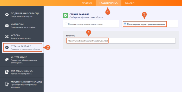 Уколико желиш да преусмериш кориснике на другу страну или на инсти образац после слања након што тајмер одброји време, ево како да то урадиш:
