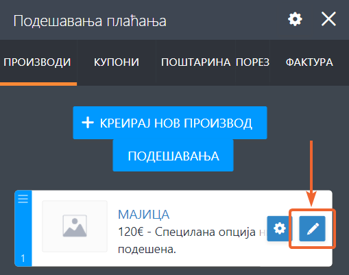 - У картици Производа, кликни на иконицу оловке поред производа којег си управо додао.