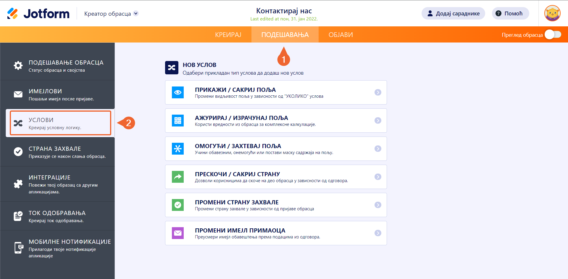 Како да подесим условну логику за своје обрасце?