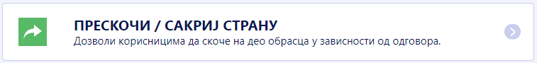 Овај услов се такође зове и логика за прескакање. Дозвољава ти да прескочиш или сакријеш стране у зависности од одговора кориника. Можеш да поставиш додатна питања на новој страни или да једноставно завршиш образац.