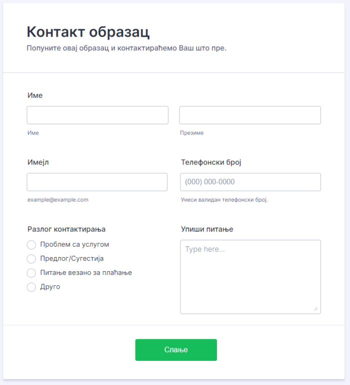 На следећем снимку екрана можеш да видиш разлику између поља где је ознака поља лево и изнад поља: