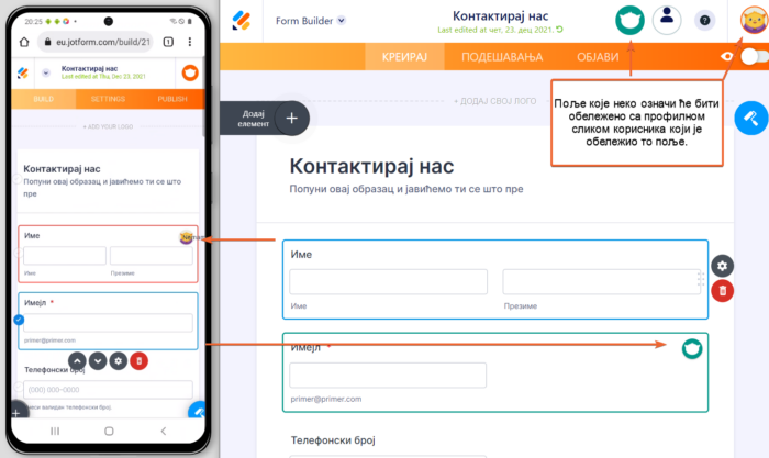 Поред тога, слике сарадника ће такође бити приказане уколико одаберу неко од поља на обрасцу. Тако ћеш имати увид о томе ко ради на чему. ?