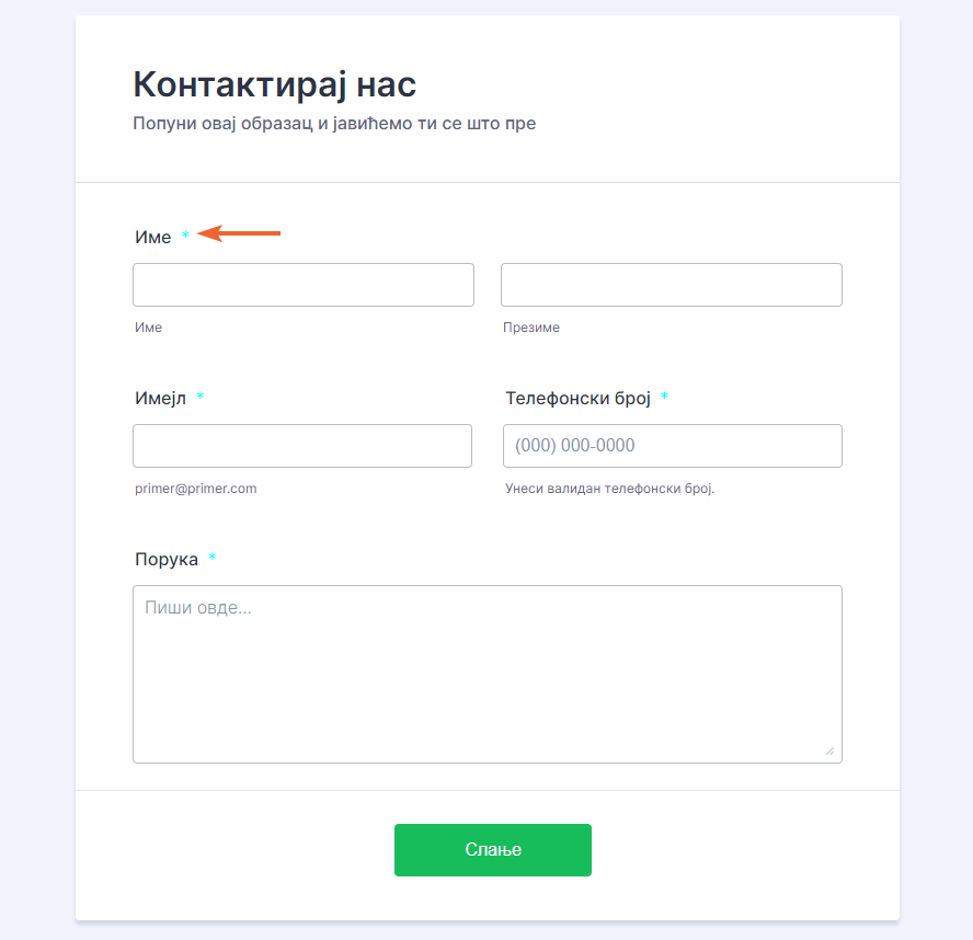 }Промени боју звездице која означава обавезна поља