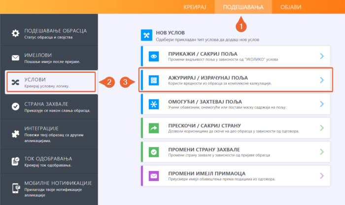 - Одабери Услове са леве стране.