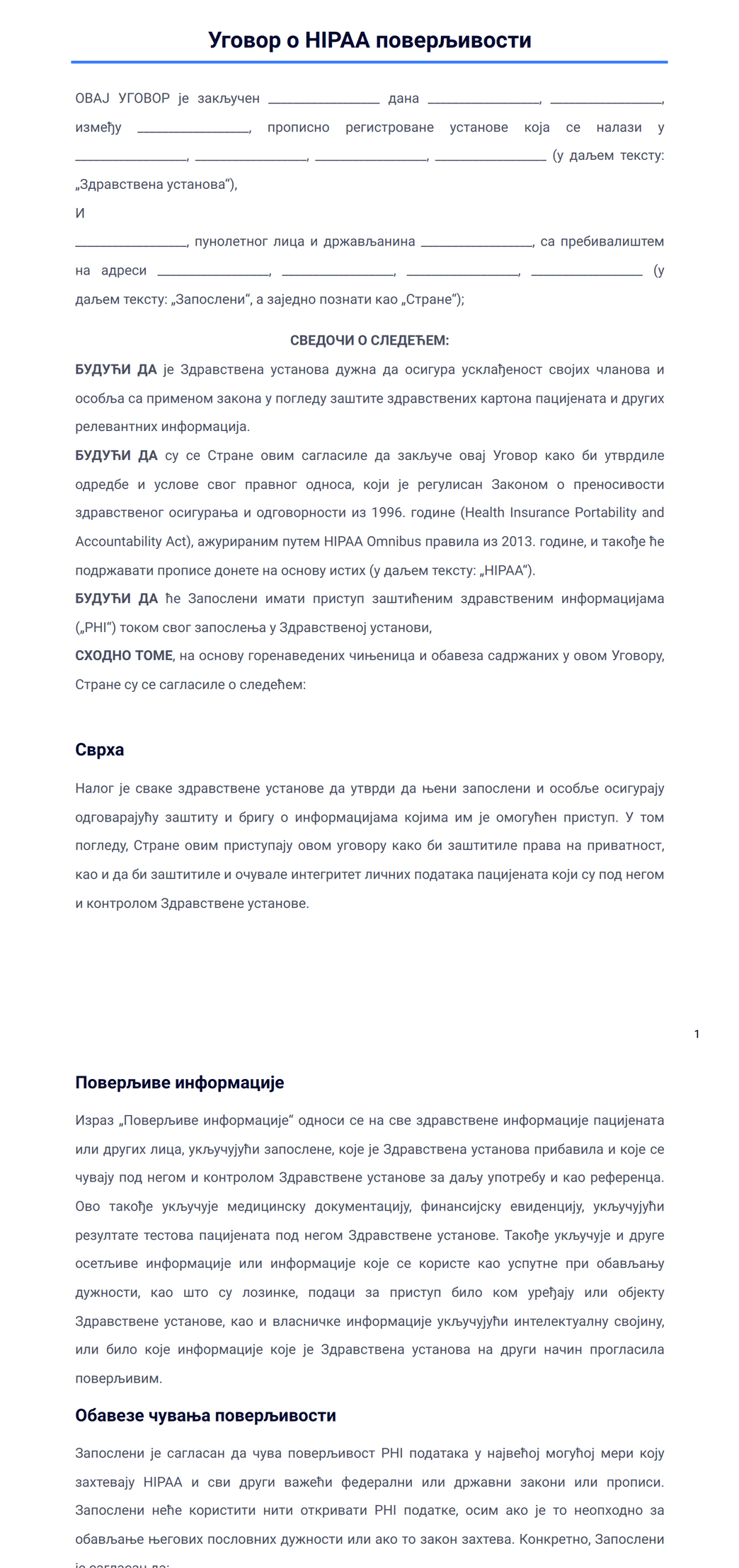 Уговор о HIPAA поверљивости