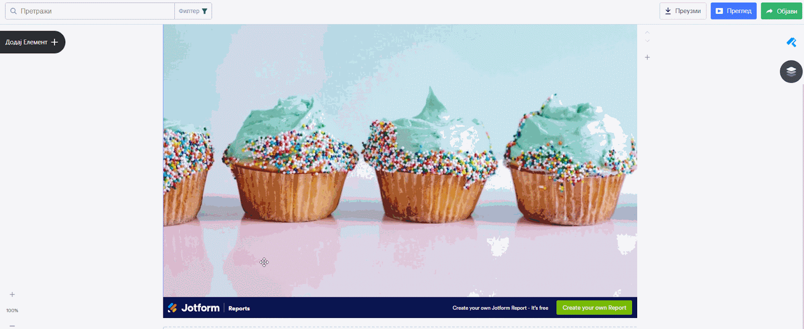 У празном извештају, можеш променити фонт, поставити боју позадине, преуредити странице и отпремити фотографије. Слично као код Jotform-овог Креатра Образацаа, све што треба да урадиш је да превучеш графички елемент у свој извештај и прилагодиш величину или спецификације како би задовољили твоје потребе.