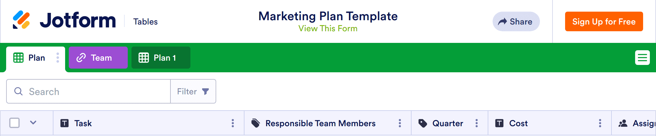 A marketing plan is a document that outlines each item and detail needed to achieve goals set out in a strategic marketing plan. If you manage a marketing team, our free Marketing Plan Template will help you and your teammates keep track of your goals and set them in motion. Start by describing each task, listing start and end dates, and estimating budget costs in the spreadsheet. You’ll be able to view and edit your marketing plan from any device, and you can easily share it with teammates by sharing the template link.