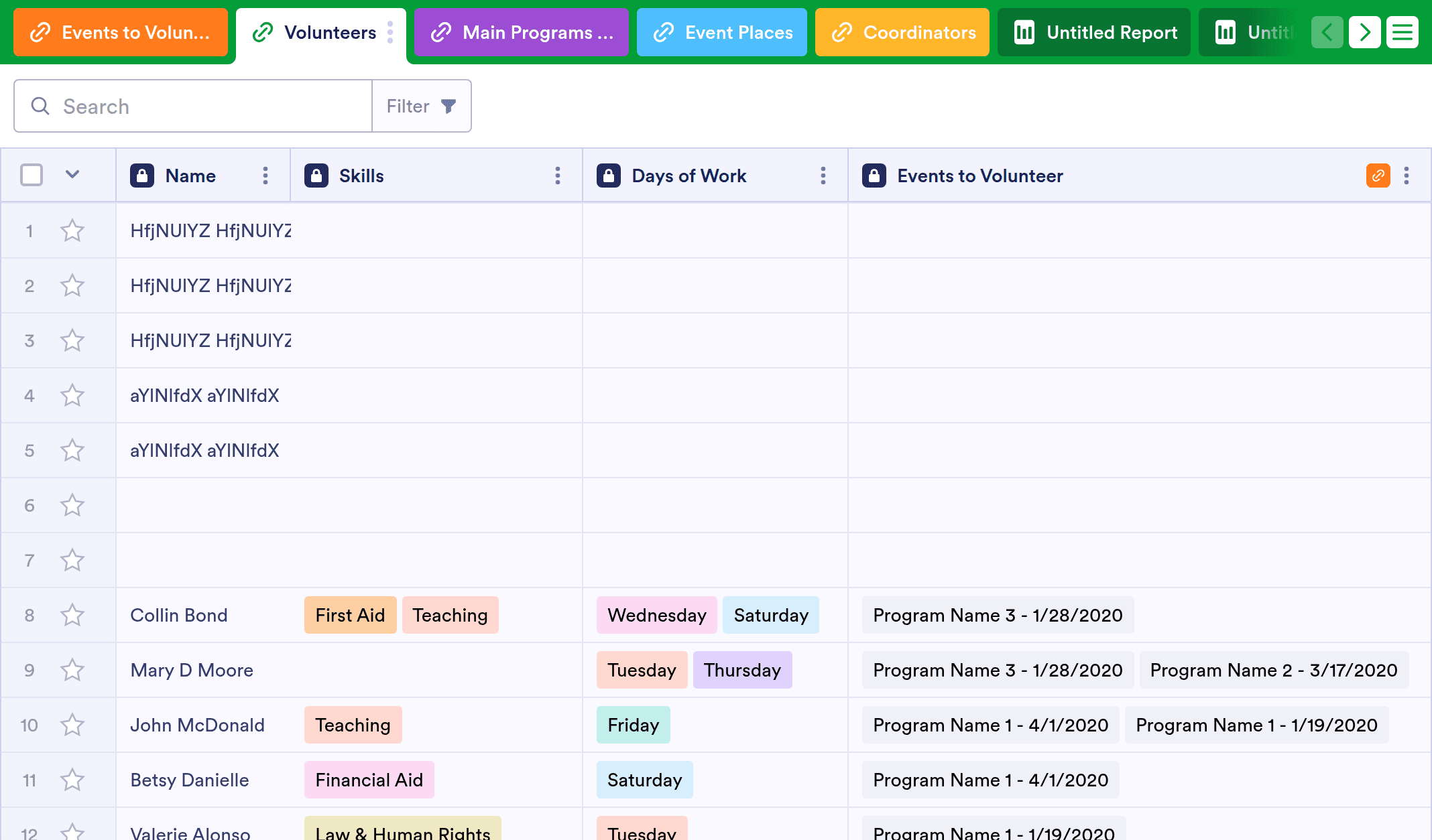 A volunteer signup sheet is used by charities or nonprofits to manage volunteer details online. With Jotform’s free online Volunteer Sign Up Sheet, your charitable organization can easily manage volunteer applications, contact info, event details, hours of work, and more. Get started by customizing this template and filling it out manually, or connect it to an online form to auto-populate the table. If you’d like to see which days of the month your volunteers are working, simply switch from spreadsheet to calendar view to easily see shift details on any device.