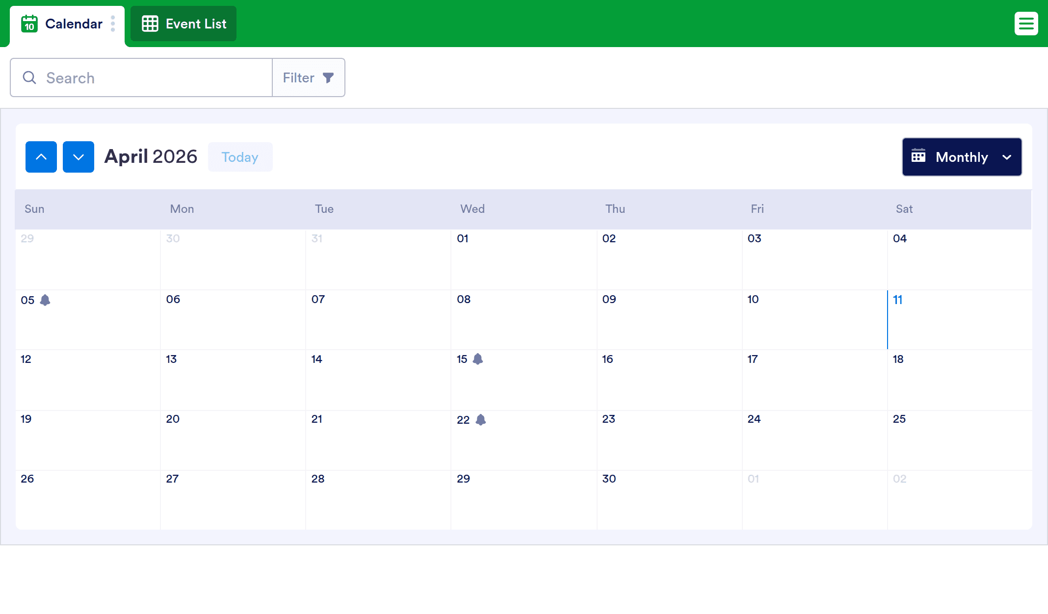 Schedule and manage fundraising events online. Free online calendar template. Switch to spreadsheet, and report view. Easy to customize and share. No coding.