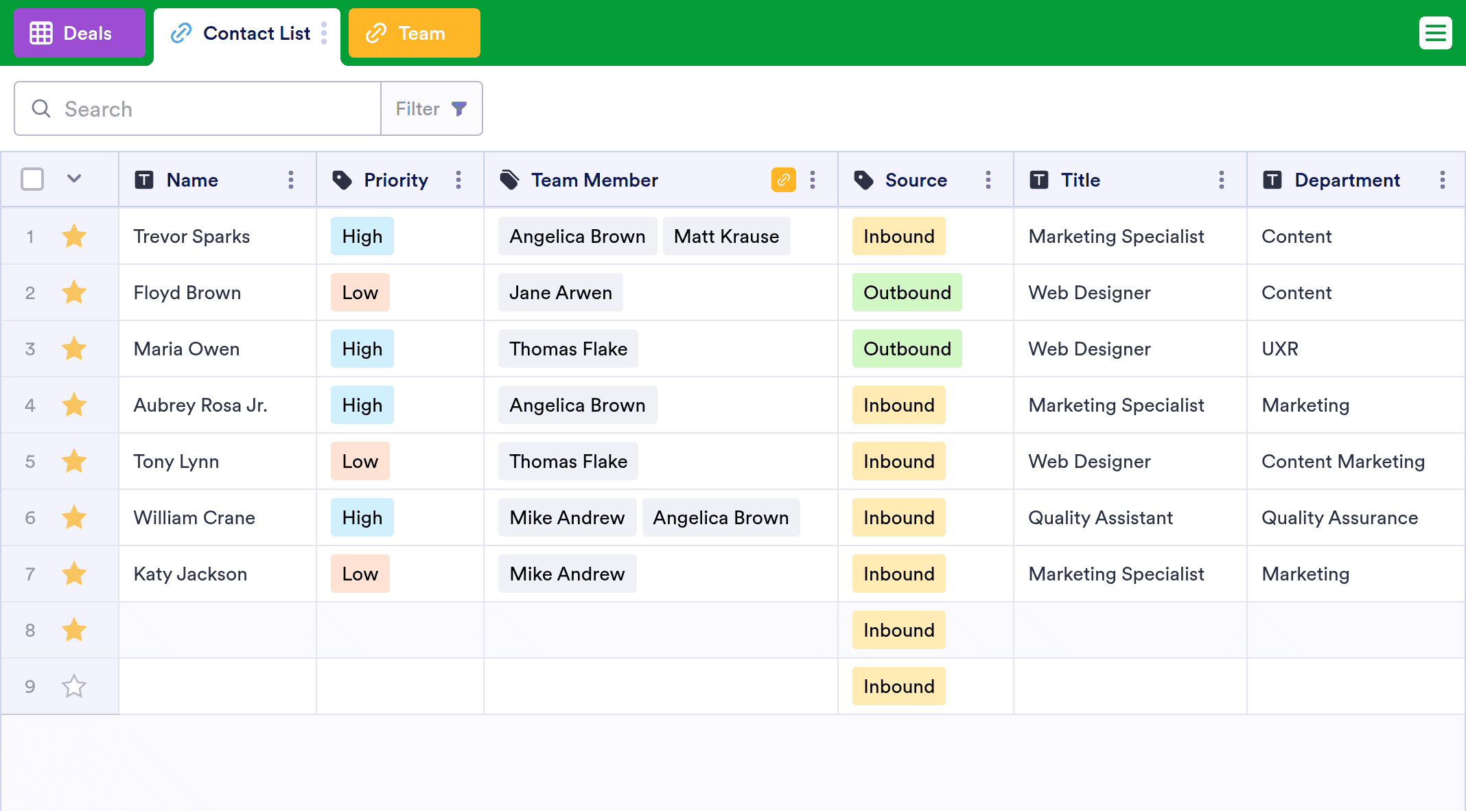 A simple CRM is an easy-to-use business relationship management system that provides you with increased productivity and improved profitability. Use this free Simple CRM Template to easily record interactions with potential and current customers, keep contact details of primary contacts, assign employees to business interactions, and more. Simply embed the attached lead generation form on your website to start collecting contact information — new leads will appear in your Simple CRM automatically! You may also enter contact information into the table manually.