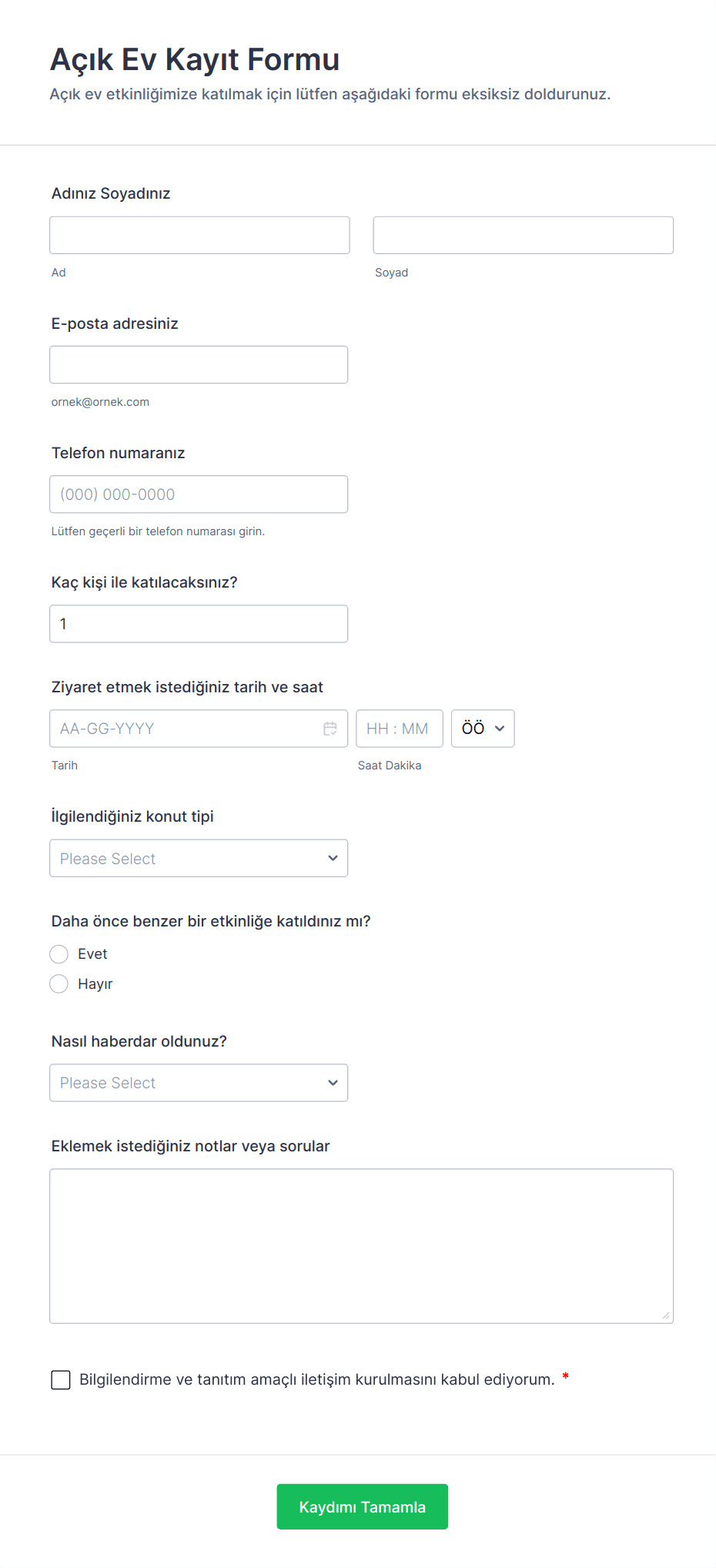 Etkinlik Kayıt Formu Şablonu