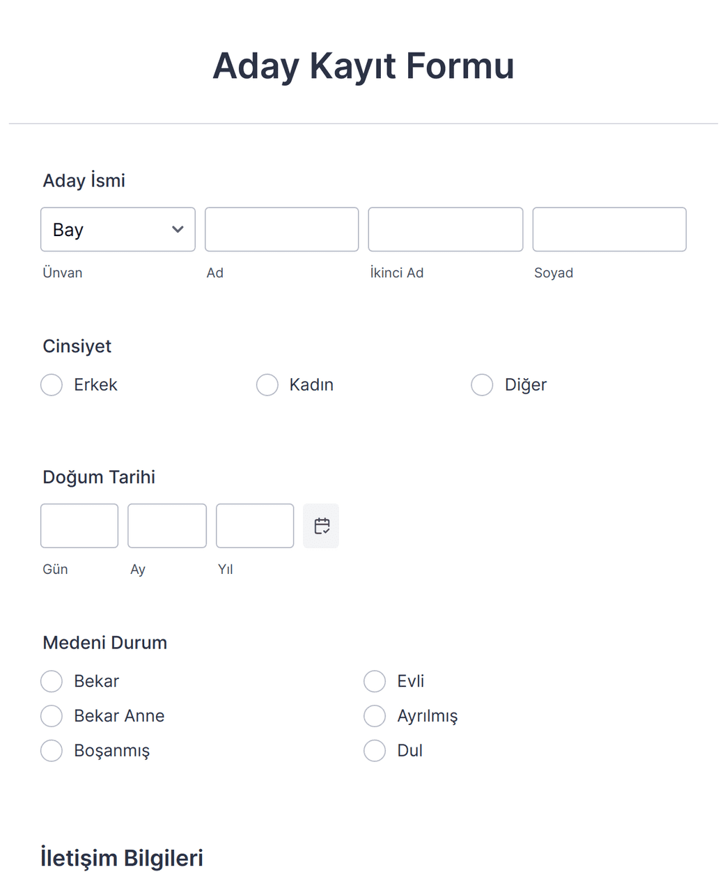 İş Başvuru Formu, iş başvurusu yapan kişilerden bilgi toplamak üzere kullanılan bir formdur. Şirketinizdeki açık pozisyonlar için en iyi adayları bulmaya yardımcı olmak üzere ücretsiz bir online İş Başvuru Formu kullanın! İşletmenize özel bir İş Başvuru Formu şablonu oluşturun, bir renk teması seçin ve adaylarınızdan ihtiyaç duyduğunuz tüm bilgileri zahmetsizce toplayın. Jotform ile iş başvurusu yapanlardan anında yanıt alabilir veya bunları otomatik olarak e-postanıza, depolama hizmetinize veya tercih ettiğiniz CRM'ye ekleyebilirsiniz. 100'den fazla entegrasyonumuzla formlarınızı takip edebilir, yanıtları gözden geçirebilir ve takip sürecini kolaylaştırabilirsiniz!