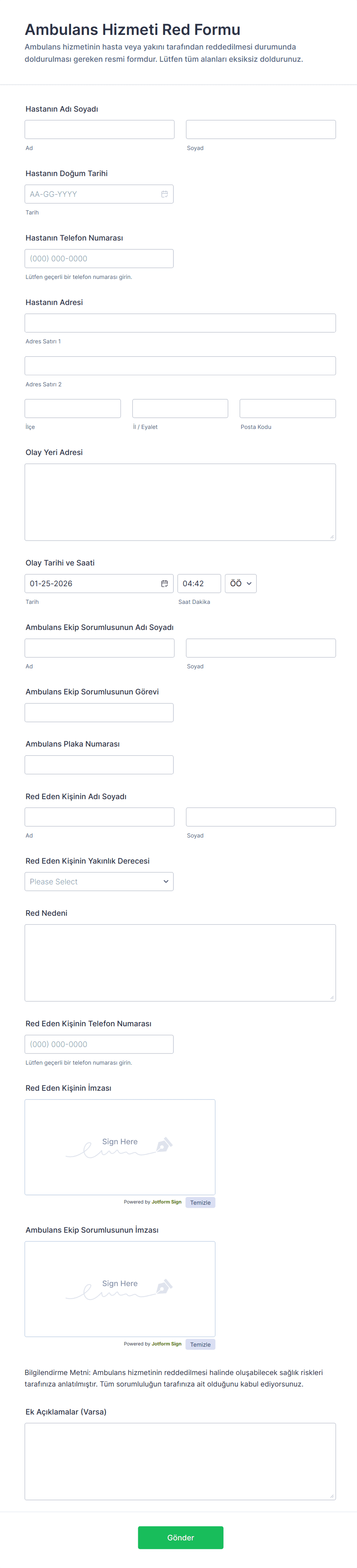 Jotform ile onay formları oluşturmak ve yönetmek sorunsuz bir süreç haline gelir. Jotform'un kodlama gerektirmeyen Form Oluşturucu'su, kullanıcıların hasta kabulü, ebeveyn izinleri veya veri işleme sözleşmeleri gibi özel ihtiyaçlarına yönelik onay formlarını hızlıca tasarlamalarına olanak tanır. Sürükle-bırak arayüzü, özelleştirilebilir şablonlar ve güvenli depolama ve bildirim sistemleriyle entegrasyon, onay yanıtlarını toplamayı, düzenlemeyi ve erişmeyi kolaylaştırır. Kullanıcılar, Jotform'un gelişmiş özelliklerini kullanarak uyumluluğu sağlayabilir, iş akışlarını düzenleyebilir ve hem kuruluşlar hem de yanıtlayanlar için profesyonel bir deneyim sunabilir.