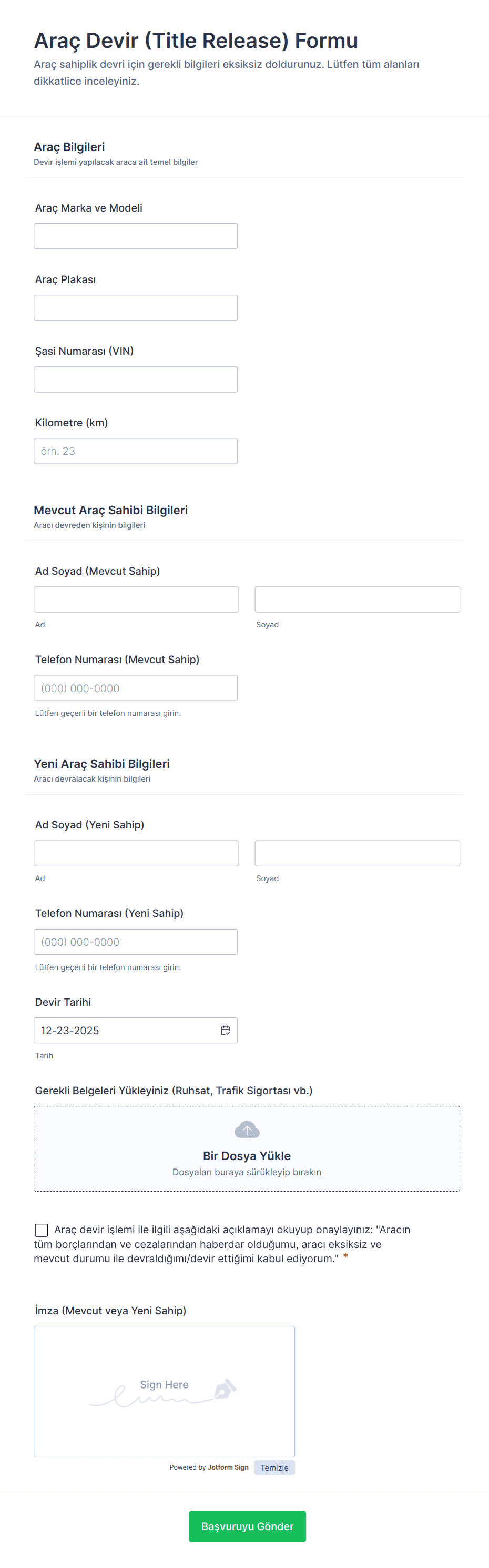 Otomotiv formu, otomotiv işletmelerinin araçlar, müşteriler, hizmetler, kiralamalar ve daha fazlasıyla ilgili bilgileri toplamak, yönetmek ve işlemek için kullandığı dijital bir belgedir.