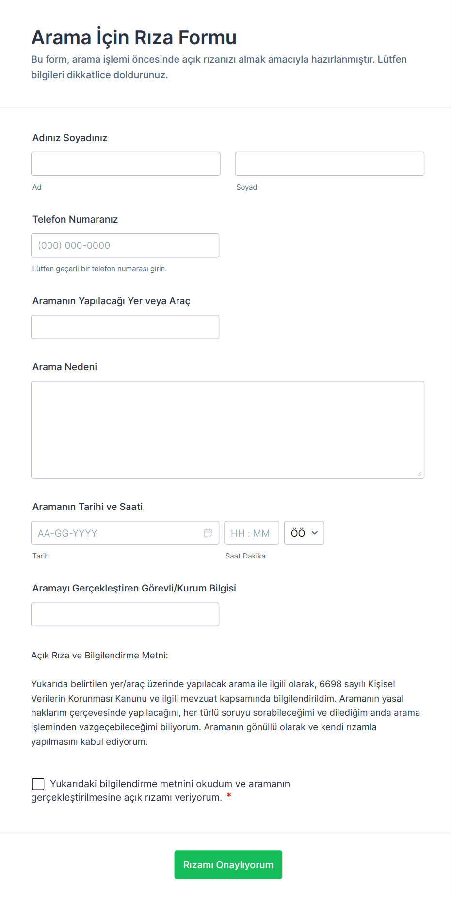 Onay formları genellikle kişisel bilgilerin nasıl kullanılacağını, saklanacağını ve korunacağını açıklayan gizlilik beyanlarını içerir, böylece veri koruma yasalarıyla şeffaflık ve uyumluluk sağlanır.