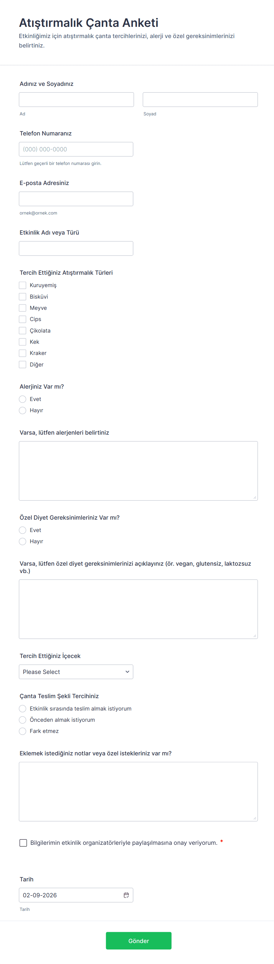 - Etkinlik Geri Bildirim Anketleri: Katılımcı memnuniyetini değerlendirin ve gelecekteki etkinlikler için öneriler toplayın.