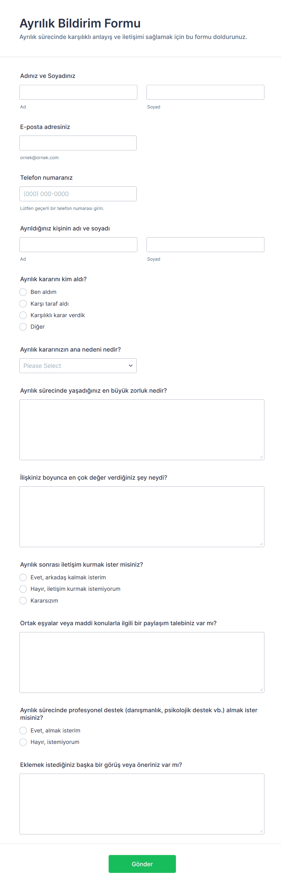 - Akademik araştırmalar için Likert ölçekleri ve demografik soruları kullanın.