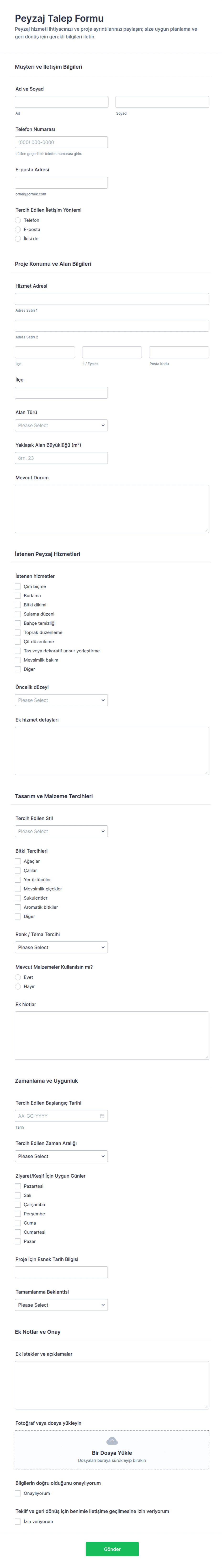 - Bazı formlar dosya yükleme (örneğin, bozuk bir eşyanın fotoğrafları) gerektirebilirken, diğerleri iş akışı onayları veya ödeme entegrasyonu gerektirebilir