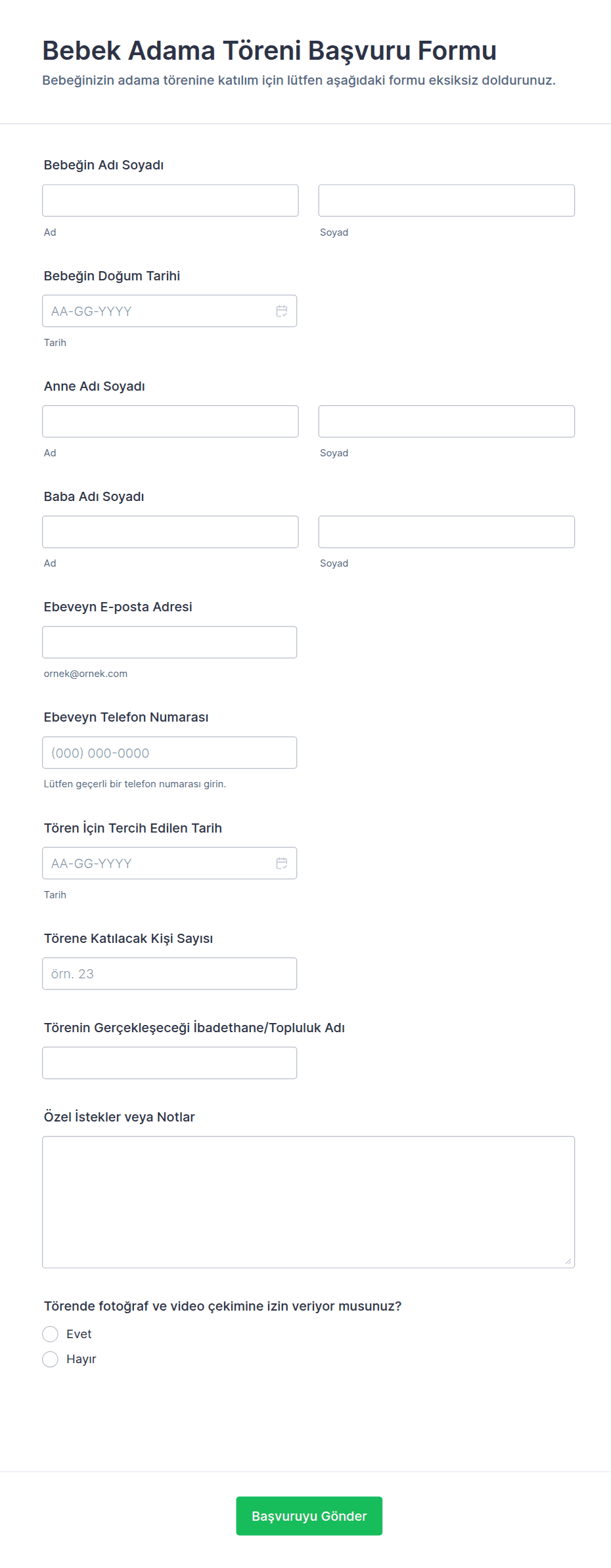 - Bazı formlar erişilebilirlik ihtiyaçları, seyahat düzenlemeleri veya ön sipariş ürünler için ek alanlar gerektirebilir.